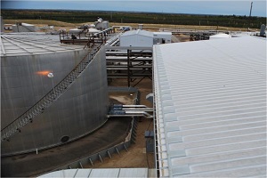 The storage tanks are located inside a dyked tank farm. Liners are installed underground and around dyke walls for the secondary containment requirements. The tank settle ment may break the liner. Moreover, the corrugated steel panels may cut through the liners.