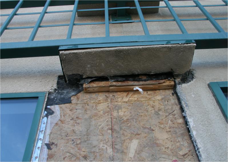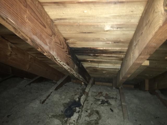 Water damaged roof joists and deck.